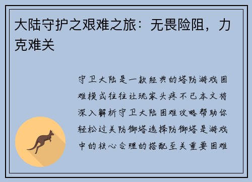 《守卫大陆》是一款经典的塔防游戏,困难模式往往让玩家头疼不已。本文将深入解析守卫大陆困难攻略,帮助你轻松过关。